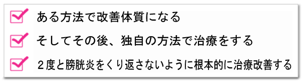 そして試行錯誤の末、ようやく自然に膀胱炎を改善させる法則を生み出しました。