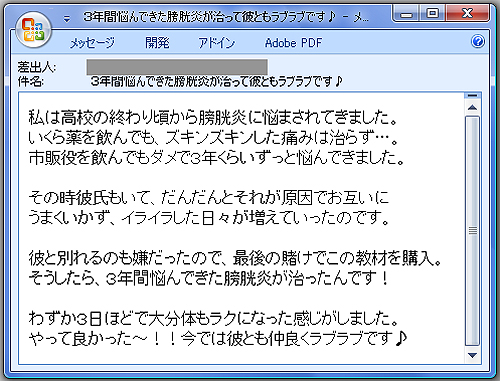 私こそ膀胱炎を治す方法に悩んでいたんです。