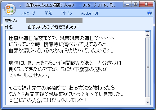 1週間後、彼女は泣きながら 「また、血尿と排尿痛が始まりました・・・。」 | ![]() |