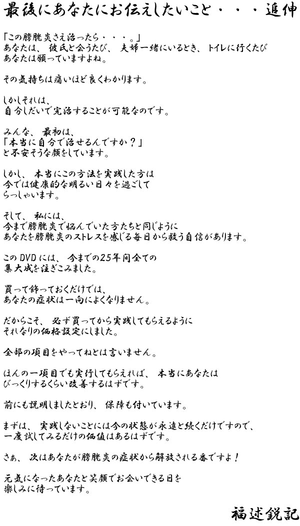 だからこそあなたに膀胱炎を改善する、その真実の方法をすべてお伝えしようと思います。